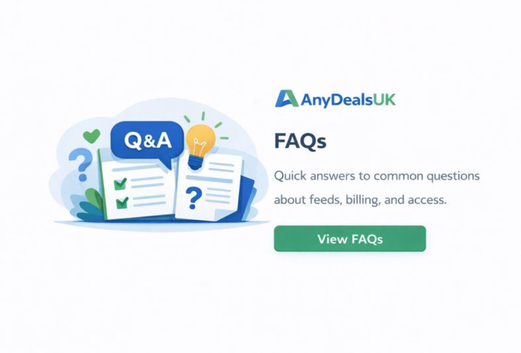 Anydeal’s Policies -Terms and Conditions -Privacy Policy -Refund and Cancellation -Acceptable Use -Data feed, usage and licensing -Affiliate disclosure statement
